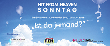 Der Song «Ist da jemand?» von Adel Tawil steht beim «Hit-From-Heaven-Sonntag» am 8. September im Mittelpunkt vieler Gottesdienste in der Evangelischen Kirche von Kurhessen-Waldeck. Über den diesjährigen Hit konnten unsere Leser auf ekkw.de und FFH.de abstimmen und gaben in beiden Online-Votings insgesamt 1.185 Stimmen ab. Der Song von Adel Tawil setzte sich im Online-Voting mit 48 Prozent der Stimmen gegen Herbert Grönemeyer mit «Bist du da?» (28 Prozent) und Lukas Graham mit «Love Someone» (24 Prozent) durch.