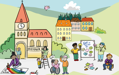 Unser Wimmebild zeigt die Realität natürlich nicht eins zu eins, doch typische Szenen werden sichtbar. Sie zeigt aber typische Szenen. Wir laden Sie ein, das eigene Umfeld unter die Lupe zu nehmen – zu entdecken, was da alles wächst und wirkt. So geht´s … (Die Kurzanleitung hier als PDF anschauen.)