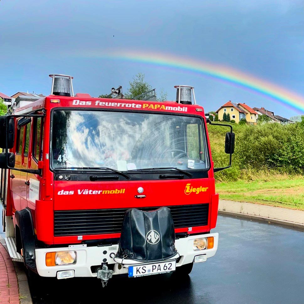 Hier setzt das PAPAmobil der Evangelischen Kirche von Kurhessen-Waldeck an: Ein umgebautes Feuerwehrauto, ausgestattet mit Spielsachen, Baumaterial, Werkzeug, Grill und Feuerschale, bringt seit 2016 Väter und ihre Kinder in Nord- und Mittelhessen zusammen. Das PAPAmobil macht Station auf Spielplätzen, an Kitas, Grundschulen, in der Natur oder in Kirchengemeinden – überall dort, wo Väter und Kinder gemeinsame Zeit verbringen können.
