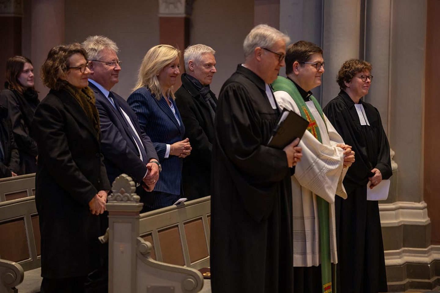 v.l.: Dr. Wolfgang Pax (Generalvikar im Bistum Limburg), Prof. Dr. Peter Kohlgraf (Bischof des Bistums Mainz), Prof. Dr. Beate Hofmann (Bischöfin der EKKW), Ines Claus (CDU-Fraktionsvorsitzende im Hessischen Landtag), Prof. Dr. Christiane Tietz (Kirchenpräsidentin der EKHN) und Dr. Martin Stanke (Generalvikar im Bistum Fulda).