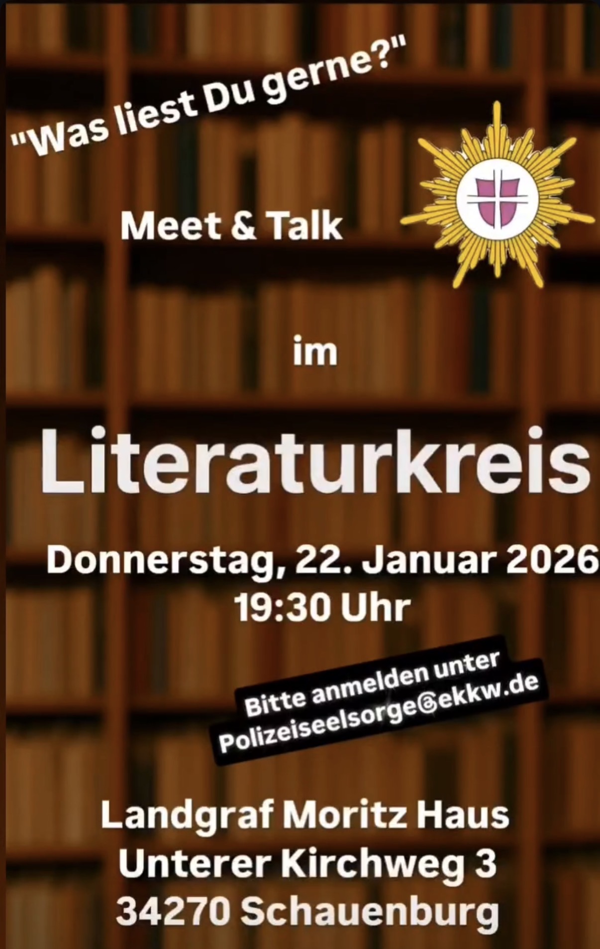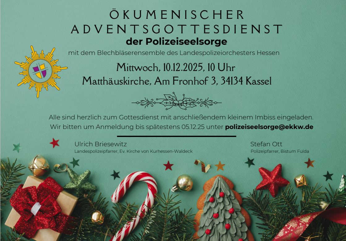 Bei weiteren Fragen sprechen Sie uns gerne an: Polizeiseelsorge@ekkw.de.